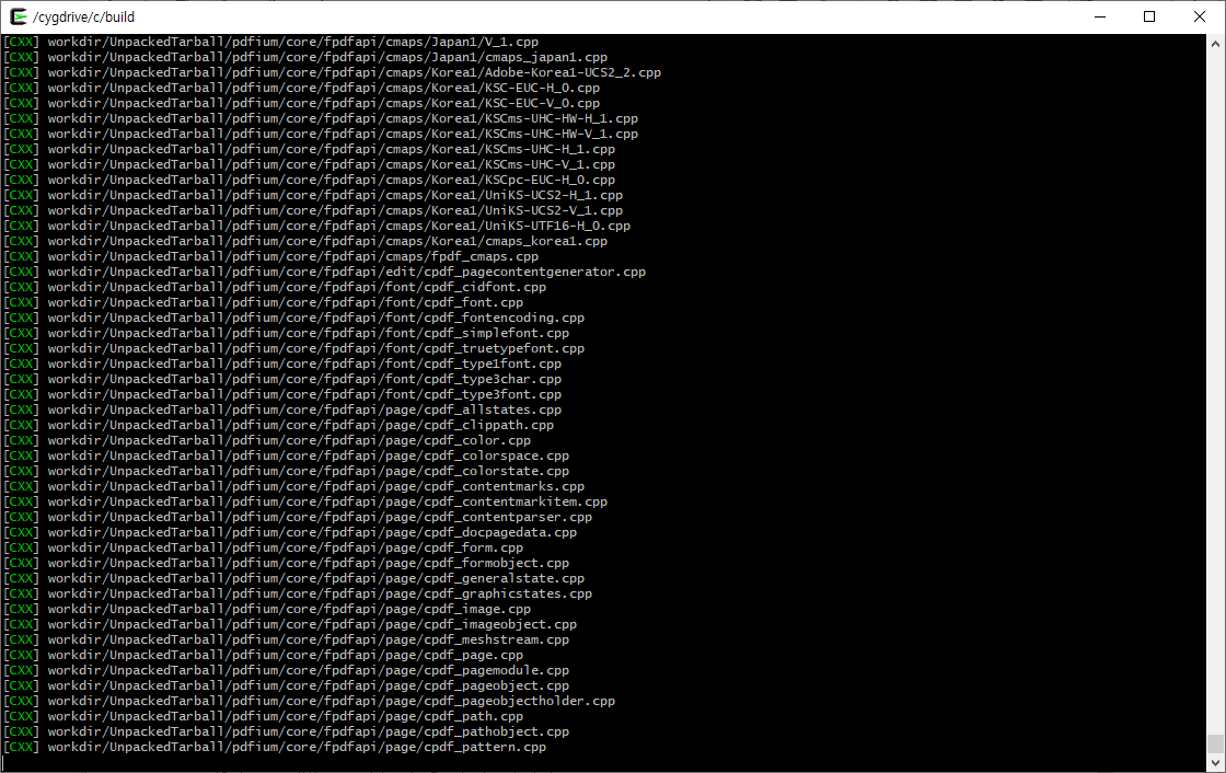 Cygwin에서 빌드 스크립트 (Visual Studio 2019의 컴파일로로 빌드하도록 설정하였습니다.