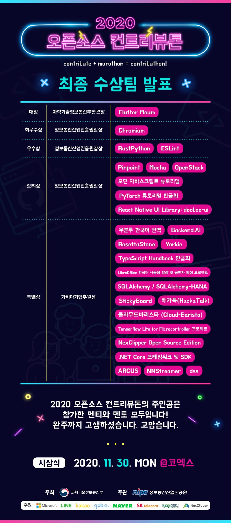 올해의 "오픈소스 컨트리뷰톤 2020"이 2016, 2017, 2018, 2019년에 이어 5번째로 열리는 행사라고 하더군요.